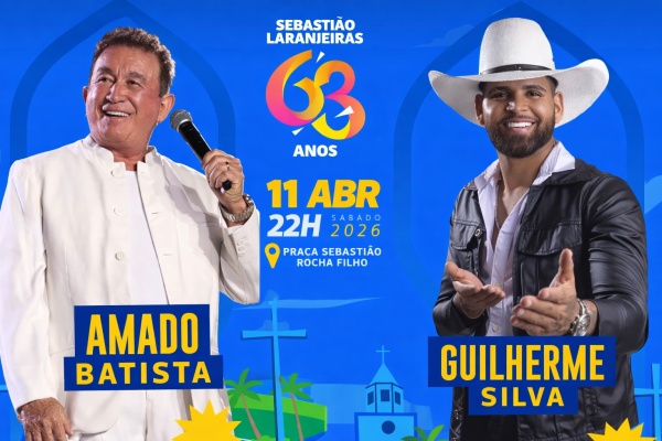A prefeitura do município de Sebastião Laranjeiras, no sudoeste da Bahia, começou a divulgar as primeiras atrações confirmadas para as comemorações dos 63 anos de emancipação política da cidade, que serão celebrados no mês de abril. Até o momento, dois nomes já foram anunciados para animar a festa: o cantor Amado Batista e o artista Guilherme Silva.