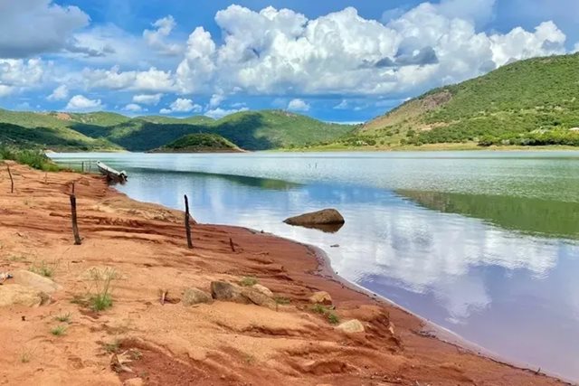 O volume da Barragem de Ceraíma, em Guanambi (BA), chegou a um nível crítico, operando com apenas 40% da capacidade devido à estiagem prolongada.