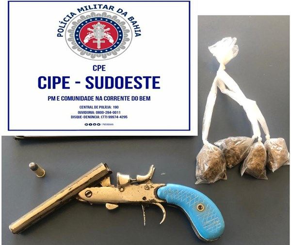 Na manhã desta quinta-feira (23), a Companhia Independente de Policiamento Especializado (CIPE/Sudoeste) prendeu um homem, vulgo “Pedal’, acusado por tráfico de drogas e porte ilegal de arma de fogo, durante diligências realizadas na zona rural de Malhada (BA).