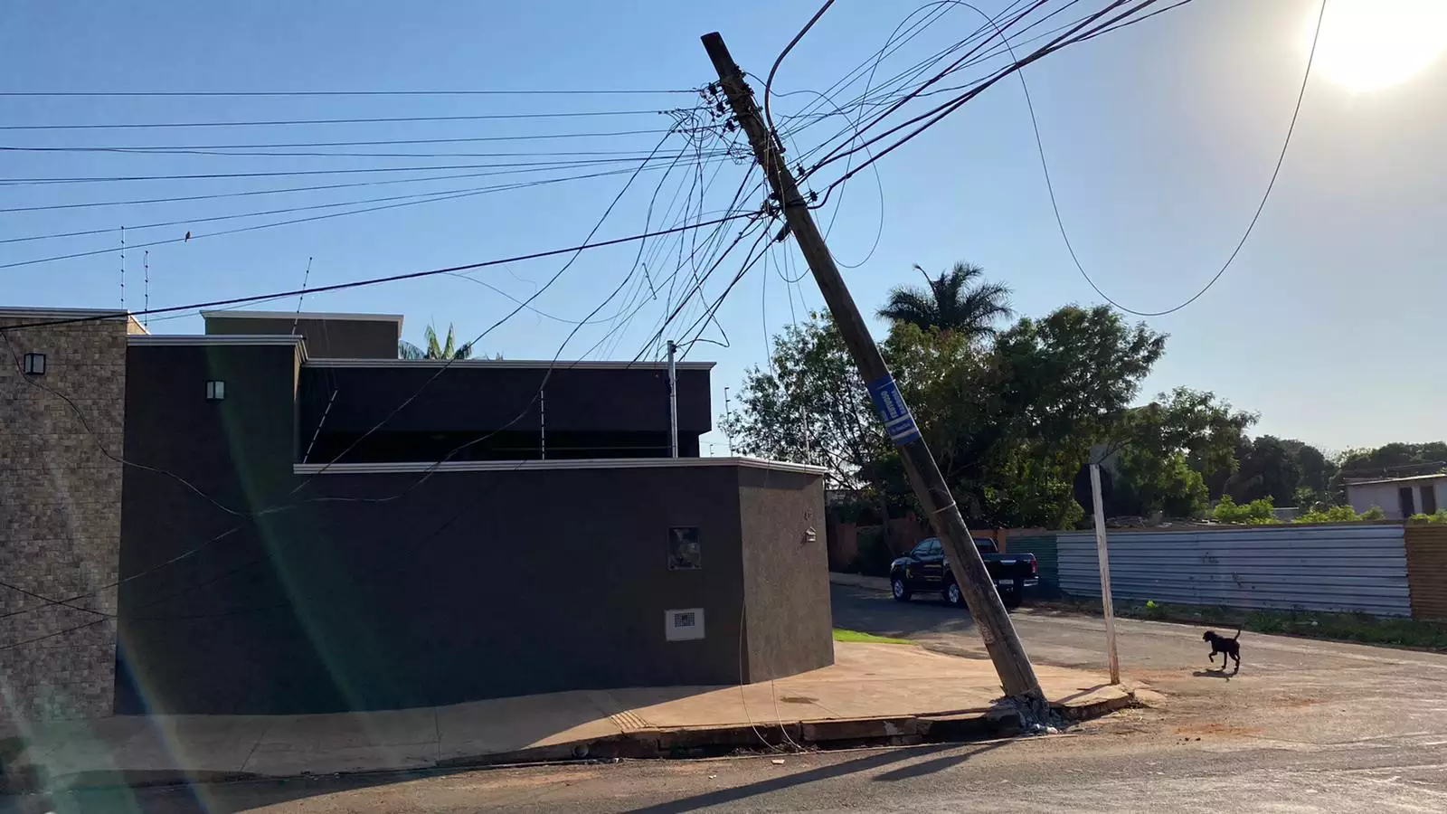 De acordo com informações da Polícia Militar (PM), o veículo ficou preso em um fio de internet que estava baixo e, ao tentar seguir, acabou atingindo uma motocicleta estacionada e danificando dois postes de iluminação pública.