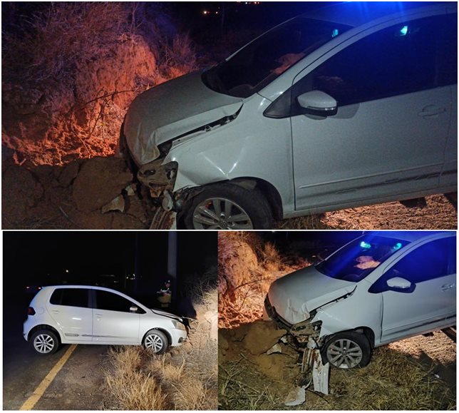 Um automóvel modelo Volkswagen Fox colidiu frontalmente contra um barranco às margens da BA-938, no distrito de Ceraíma, zona rural de Guanambi (BA), na noite de domingo (12), por volta das 21h.
