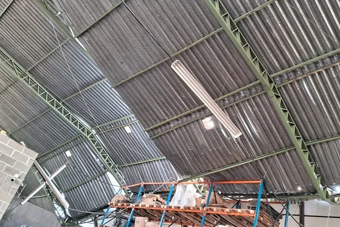 Uma chuva acompanhada de ventos intensos provocou o desabamento parcial do teto metálico de um imóvel localizado na Avenida Beneval Boa Sorte, em Guanambi (BA), por volta das 12h30 desta terça-feira (24).