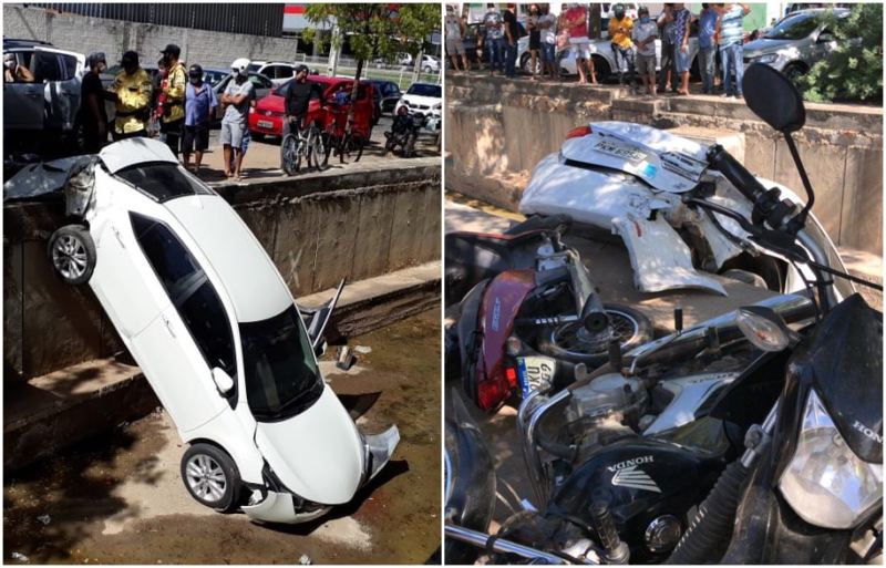 De acordo com informações obtidas pelo PORTAL VILSON NUNES, por volta das 10h20, a caminhonete transitava pela referida avenida, quando o condutor perdeu o controle da direção e bateu na traseira do automóvel e ainda atingiu mais duas motocicletas, que estavam estacionadas no mesmo local. Com o impacto da colisão, o carro foi arremessado para dentro do canal. Apesar da gravidade, ninguém ficou ferido. Houve apenas danos materiais. [veja o vídeo]
