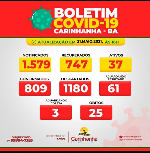 O município de Carinhanha bateu um triste recorde nesta sexta-feira (21), registrando 3 mortes por Covid em apenas um dia. pela primeira vez.