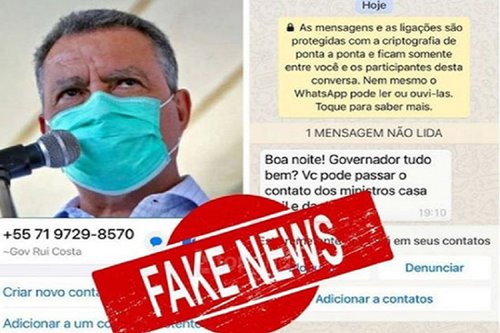 Na mesma postagem, o governador relatou que, nos últimos dias, tem sido vítima de calúnias e fake news. “Atenção: estão praticando um golpe com meu nome, usando uma foto minha no Zap em um número que não é meu. Já denunciei à polícia, que vai investigar o caso. Tenho convicção que a autoria será identificada. Nos últimos dias, tenho sido vítima de várias calúnias e fakes news. Por que será?”, escreveu o governador.