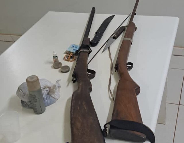 No endereço indicado, os policiais localizaram um dos envolvidos, que relatou ter efetuado um disparo para o alto com o objetivo de afugentar o próprio irmão após um desentendimento. Durante as diligências na residência, os militares encontraram uma espingarda.