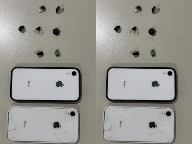 Na sequência, os militares deram continuidade às diligências e, com autorização do responsável legal, realizaram averiguação em um imóvel próximo, onde localizaram outras porções do mesmo entorpecente, totalizando sete porções da droga, além de dois aparelhos celulares.