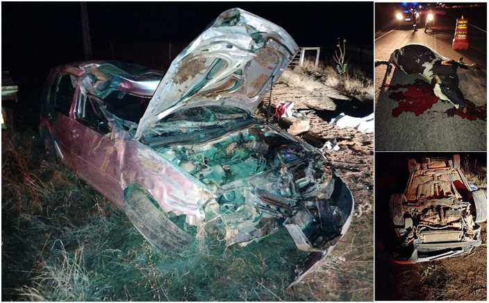 Com o impacto, o animal morreu no local e o veículo capotou várias vezes, sendo projetado para uma área distante, mais de 100 metros do ponto da batida. Conforme informações levantadas pela equipe do Portal Vilson Nunes, os dois ocupantes do carro não resistiram aos ferimentos.