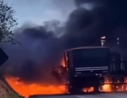 Duas carretas pegam fogo após colisão na BR-116 em Vitória da Conquista; assista