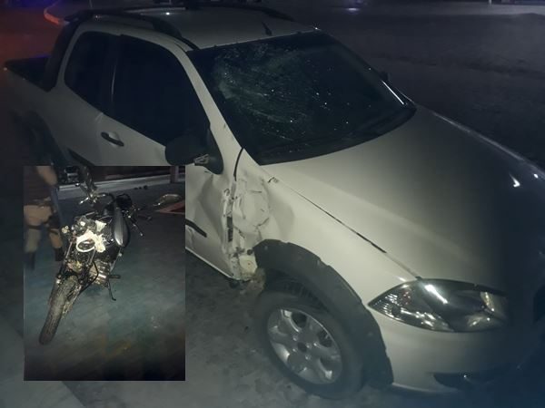 Segundo a equipe do Registro de Acidente de Trânsito –RAT, o condutor de uma motocicleta Honda Titan colidiu fortemente na lateral de um Fiat Strada, momento em que o condutor tentava retornar na via.