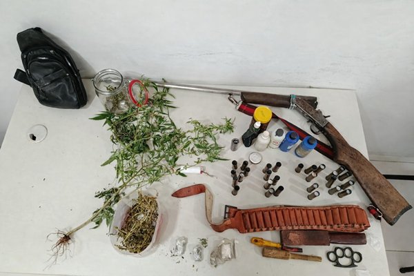 No entanto, durante a ação, os militares encontraram material ilícito em posse de um indivíduo que residia no imóvel. Na busca, foram apreendidas uma espingarda calibre 20 com numeração suprimida, cartuchos, insumos utilizados para recarga de munição e substância análoga à maconha.
