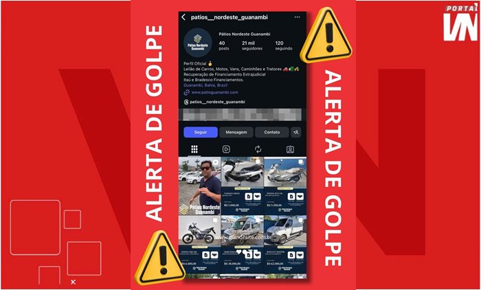Os golpistas criaram um perfil falso no Instagram — @patios__nordeste_guanambi — e um site fraudulento (www.patioguanambi.com/home), ambos sem qualquer vínculo com a empresa oficial. O objetivo é enganar cidadãos interessados em participar de leilões, oferecendo veículos com valores atrativos e solicitando pagamentos antecipados.