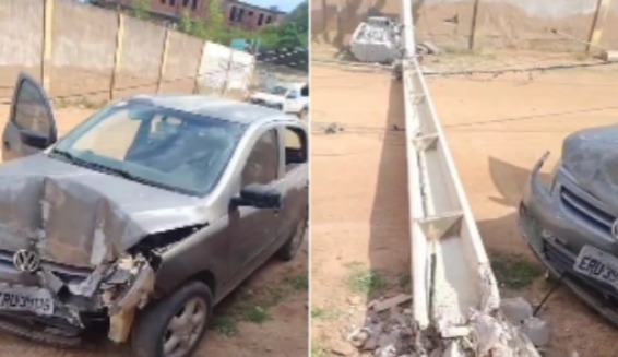 Um motorista perdeu o controle do veículo e derrubou um poste de energia na tarde desta terça-feira (18), no bairro BNH, em Guanambi, no sudoeste baiano. O acidente ocorreu por volta das 14h30, quando o condutor de um Gol licenciado em Praia Grande colidiu contra a estrutura. O poste acabou caindo para o lado oposto do carro, o que evitou consequências mais graves.