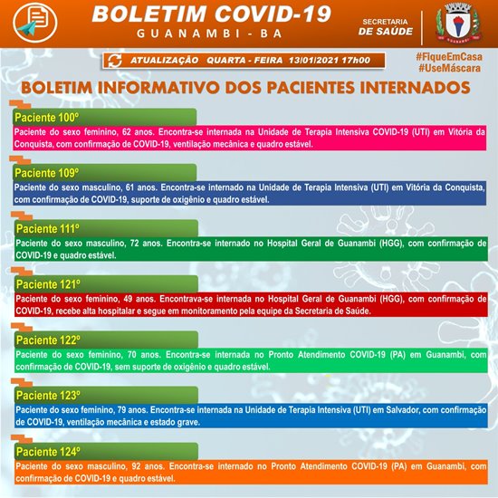 No momento, 5 pacientes estão internados, sendo 3 em Guanambi e mais 2 em Vitória da Conquista. [CONFIRA]