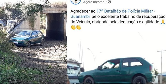 Nas redes sociais, o proprietário agradeceu ao 17o BPM pelo excelente trabalho de recuperação de seu veículo.