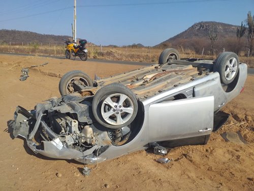 Guanambiense capota carro na BA-573 entre Guanambi e Matina