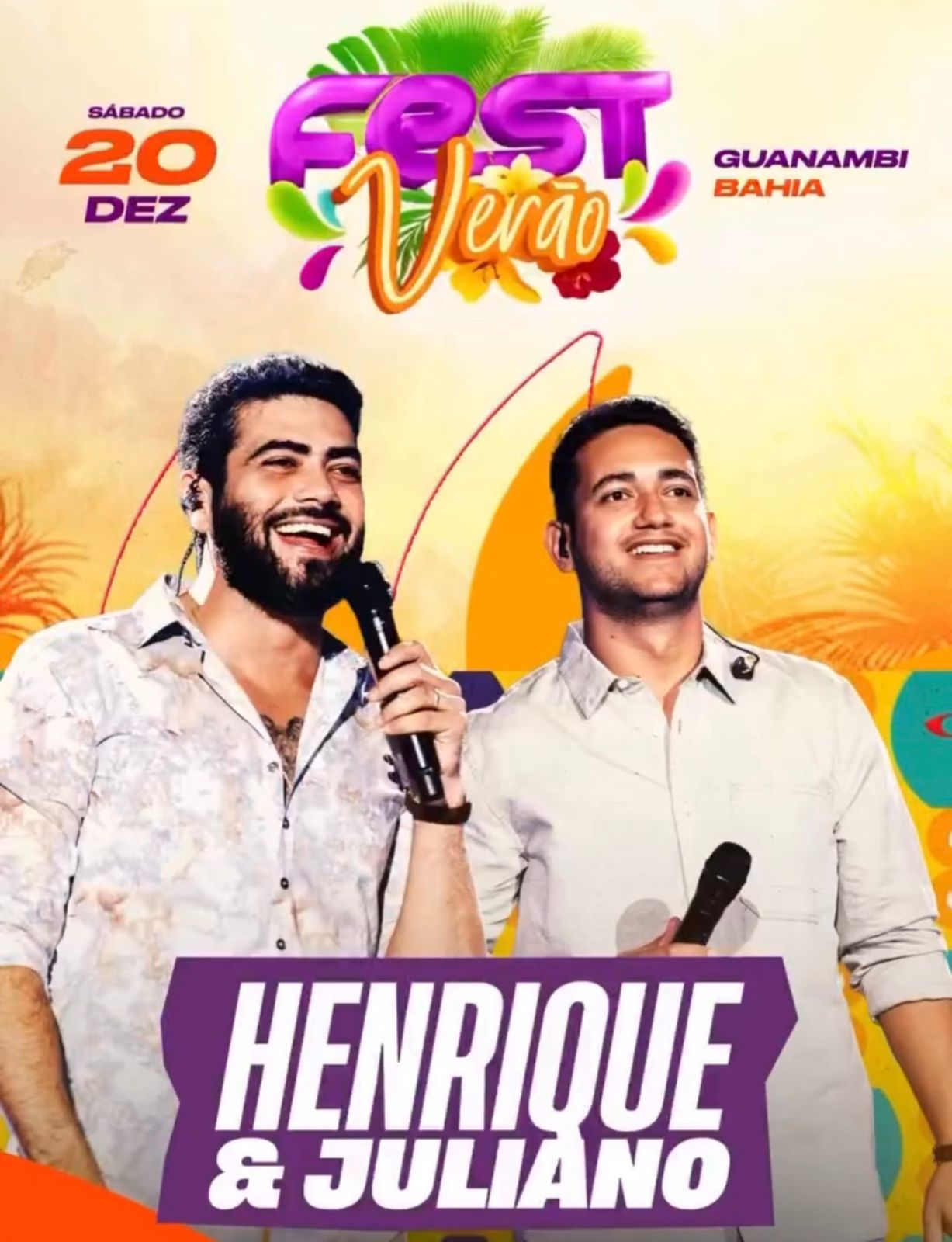 O público de Guanambi pode se preparar para uma noite inesquecível. A dupla Henrique & Juliano, um dos maiores nomes da música sertaneja do país, será a grande atração do Fest Verão 2025, que acontecerá no dia 20 de dezembro.