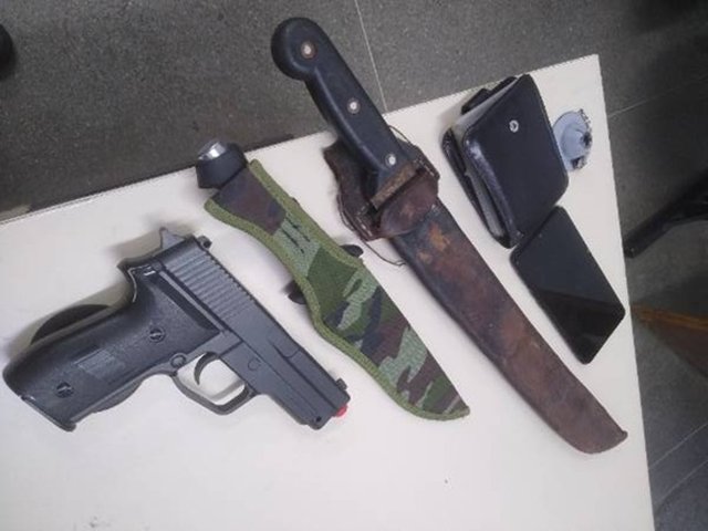Segundo informações apuradas pelo Portal Vilson Nunes, uma guarnição, com apoio da CETO, foi acionada e realizou a abordagem do suspeito, que apresentava visível estado de embriaguez e resistiu à ação policial. Durante a revista, os militares apreenderam um simulacro de pistola, além de uma faca e um facão que estavam em posse do homem.