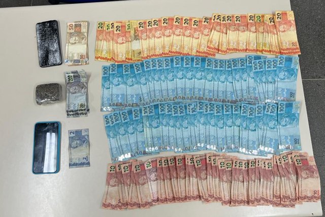 Com base nas informações, as guarnições iniciaram diligências e localizaram o homem em uma via de acesso ao evento. Durante a abordagem, os policiais encontraram com ele uma pochete contendo R$ 6.722,00 em cédulas falsas, aproximadamente 400 gramas de material semelhante à maconha e dois aparelhos celulares.
