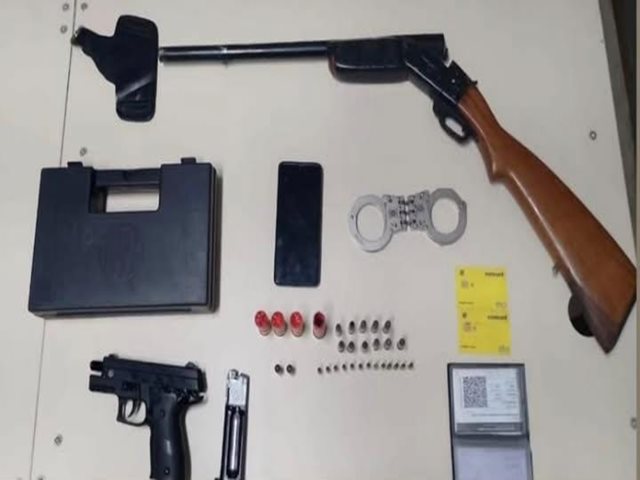 Durante a abordagem, os policiais apreenderam uma espingarda calibre 12, um simulacro de pistola, munições de calibres 12, .38, .22 e .40, além de um celular e uma algema. O homem também foi acusado de realizar cobranças de dívidas de forma ilegal, atuando como agiota e utilizando ameaças contra devedores.