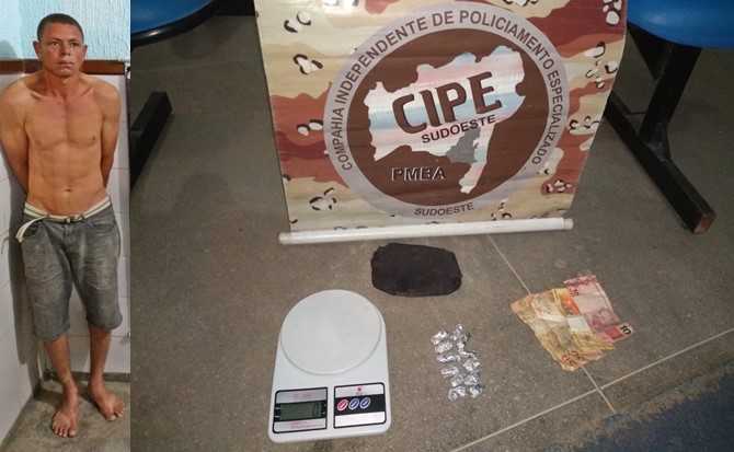 Um homem, identificado como Etelvir Alvim da Silva, foi preso na noite deste sábado (29), pela Companhia Independente de Policiamento Especializado (Cipe/Sudoeste), após ser flagrado com drogas, no distrito de Julião, na zona rural de Malhada (BA).
