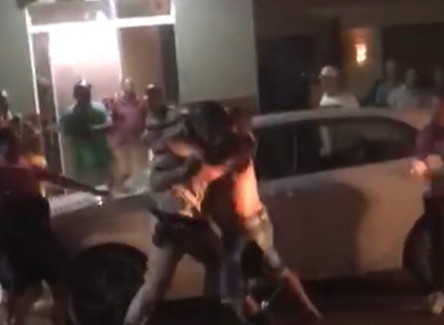 Durante a ação, uma mulher tentou interferir na abordagem e acabou sendo empurrada por um dos policiais após insistir em se aproximar. Em meio à confusão, o homem entrou em luta corporal com um policial e um capacete chegou a ser arremessado contra a equipe.