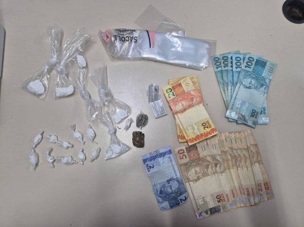 Durante a abordagem, outro suspeito conseguiu fugir ao pular o muro da residência. Na sequência, os policiais realizaram buscas no imóvel, onde localizaram porções de cocaína, crack e maconha, além de materiais utilizados para o preparo da droga e a quantia de R$ 1.422 em dinheiro.