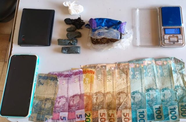 Segundo informações apuradas pelo Portal Vilson Nunes, durante a ação policial foram apreendidos um tablete e cinco buchas de substância semelhante à maconha, uma porção de material análogo à cocaína, uma balança de precisão, um celular e R$ 702 em dinheiro.