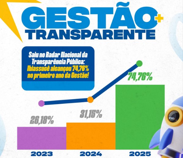 O município de Ibiassucê registrou um avanço significativo na área da transparência pública ao atingir 74,76% no Índice de Transparência, já no primeiro ano da atual gestão. O resultado reforça o compromisso da administração municipal com a divulgação clara, acessível e responsável das informações à população.