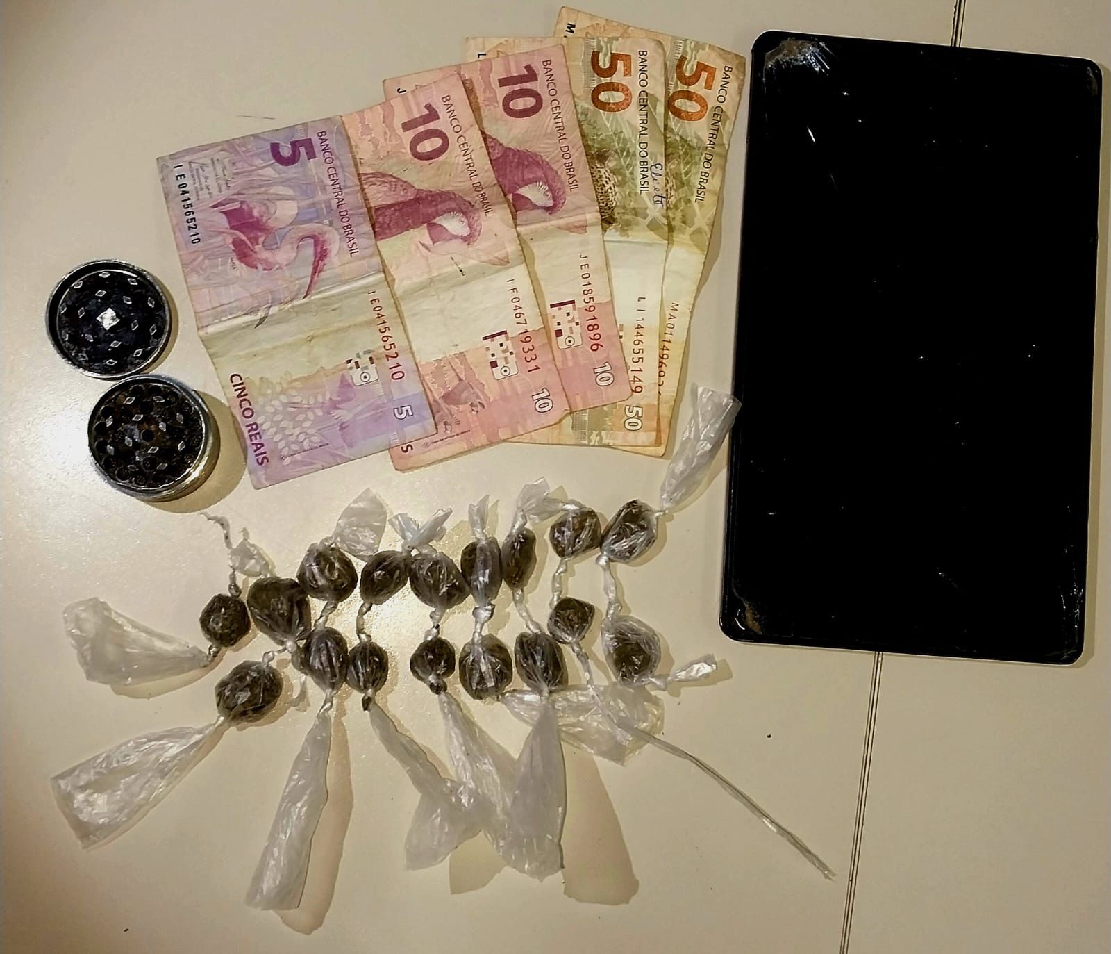 No local, os policiais apreenderam 17 porções de substância análoga à maconha, um tablet, um dichavador e R$ 125 em espécie. Todo o material foi entregue pelo próprio suspeito à guarnição.