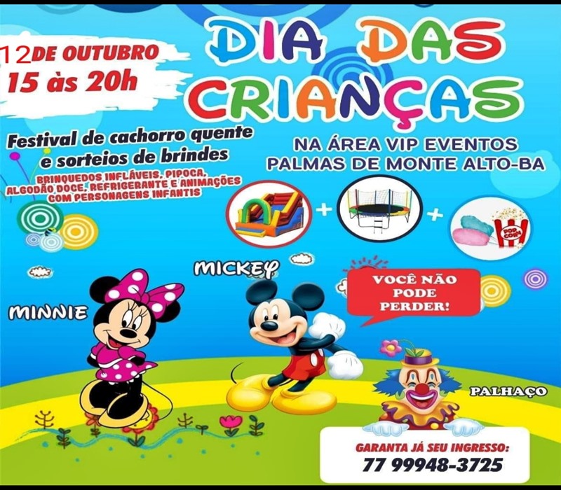 Papais, Mamães, Tios e Tias, Dindos e Dindas, poderão fazer a alegria dos seus pequenos, levando-os para passar uma tarde de alegria e diversão no ‘1º Festival da Criança’, que será realizado dia 12 de outubro, na Área Vip, em Palmas de Monte Alto (BA)