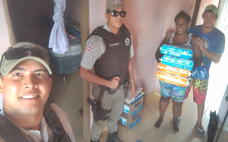 Diante disso, os soldados Márcio dos Santos Silva e Cainã Pinheiro Damasceno Santos, ambos do 17º BPM, sensibilizados com o apelo da senhora Andressa Santos, adquiriram alguns pacotes de fraldas e gêneros alimentícios e foram a procura do seu endereço.