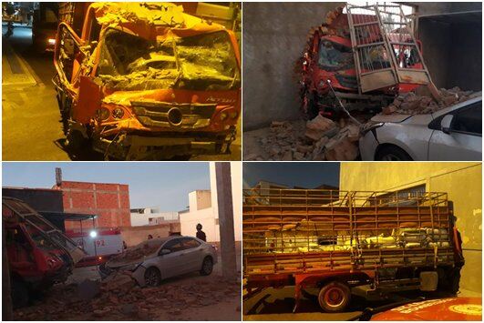 Ao passar por um cruzamento, o motorista colidiu fortemente contra um veículo Cruze, licenciado na cidade de Palmas de Monte Alto. Com o impacto, o veículo foi lançado contra uma farmácia, causando diversos danos materiais no estabelecimento. O caminhão também atingiu a grade e parte do muro de um estacionamento privado.