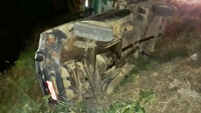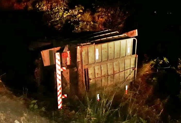 Na noite desta quarta-feira (24), um veículo, modelo F 350 gaiola, placa GYR-8577, tombou às margens da rodovia BR-122, no perímetro urbano do município de Guanambi (BA).