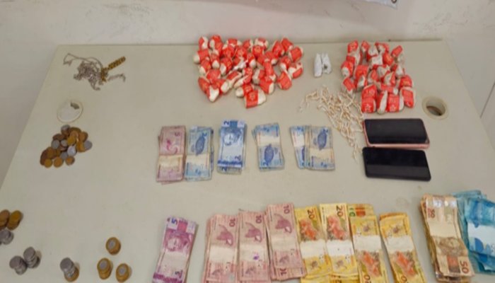 Durante a abordagem, foram encontradas porções de entorpecentes e dinheiro. Após uma verificação na área onde a mulher atuava, os militares localizaram uma quantidade ainda maior de drogas, além de diversas cédulas e moedas. A suspeita é apontada como integrante da facção criminosa conhecida como “Bonde do Maluco”, o que, segundo a polícia, aumenta a gravidade da ocorrência.