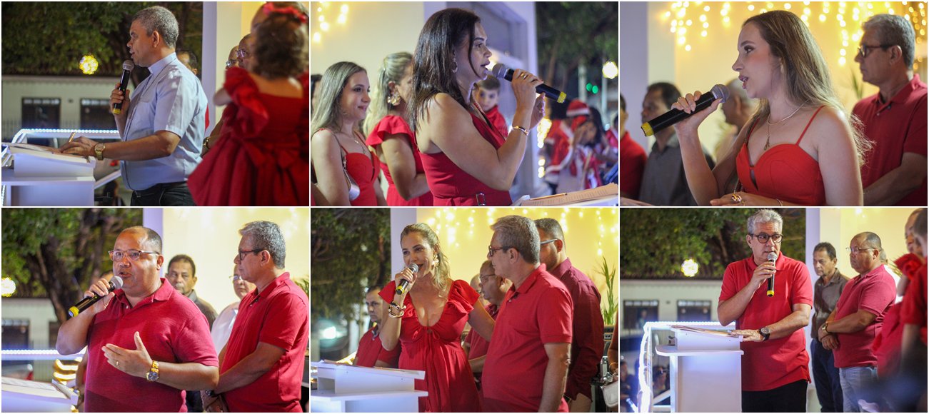 Em seguida, tiveram início as falas oficiais. A primeira-dama Marilene destacou a importância da união e da esperança neste período. A secretária de Educação, Ana Luíza, ressaltou o papel da educação como luz e caminho para o futuro. O presidente da Câmara, Domingos Neto, reforçou o compromisso do Legislativo com o desenvolvimento do município. A vice-prefeita Rose Mesquita falou sobre a dedicação da gestão em promover políticas que acolham as famílias. Encerrando a etapa institucional, o prefeito Tito deixou uma mensagem inspiradora sobre renovação, pertencimento e confiança no futuro de Palmas de Monte Alto.