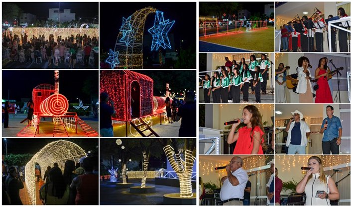 O evento começou às 19h, com apresentações culturais que envolveram o público. A abertura ficou por conta dos alunos da rede municipal, que realizaram uma apresentação instrumental sob a coordenação do professor Marcos Rogério dos Santos, emocionando os presentes e dando o tom da noite especial. O padre Sandro fez uma reflexão importante sobre o Natal e deixou uma mensagem espiritual a todos.