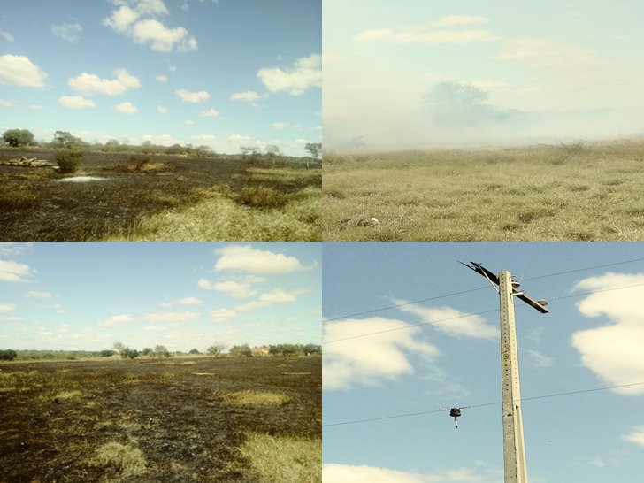 Um incêndio que iniciou por um problema na fiação elétrica de um poste causou prejuízos a agricultores. O incêndio ocorreu por volta das 11h deste domingo (9) na comunidade de Santa Maria, que fica próximo ao distrito de Espraiado, na zona rural do município de Palmas de Monte Alto. O forte vento e as pastagens já secas, dificultou o controle das chamas, que só foi contido graças a ajuda de moradores de regiões circunvizinhas que ajudaram no combate com baldes de água, mangueira e outras ferramentas.