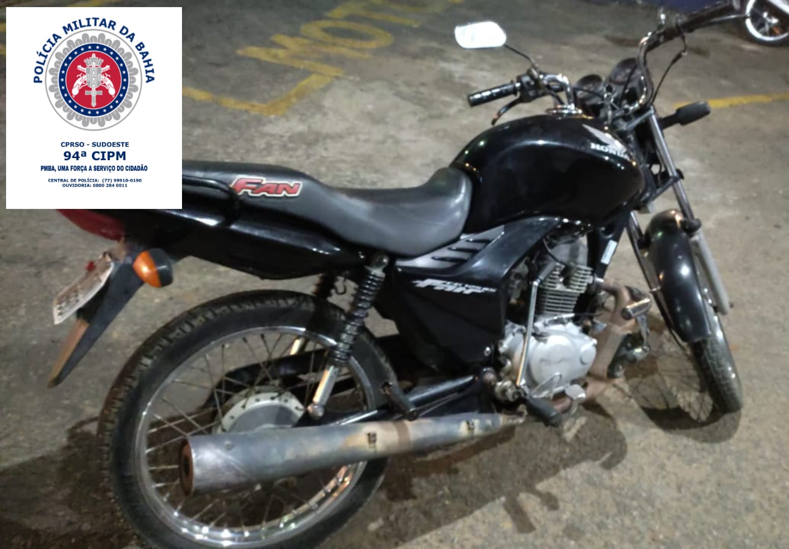Após abordagem, foi identificado que a moto, uma Honda Fan 125, tinha restrição de roubo/furto. Com o indivíduo também foi encontrada uma porção de maconha. Ele foi conduzido e apresentado na delegacia de Caetité juntamente com todo o material ilícito.