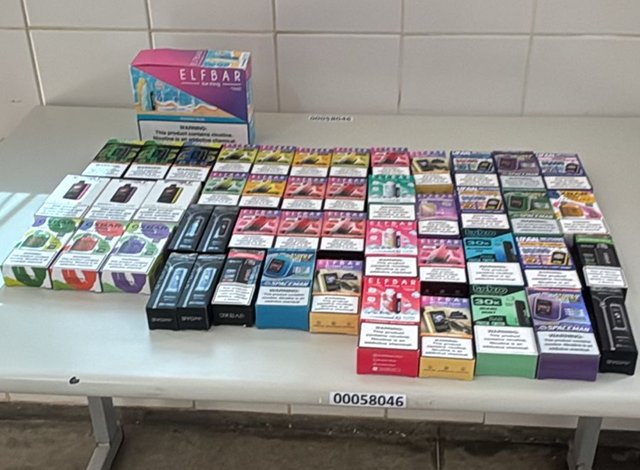A ação ocorreu durante a fiscalização de um ônibus interestadual. No compartimento de bagagens, foram encontradas 47 unidades de cigarros eletrônicos, produto contrabandeado e proibido no Brasil. Todo o material foi apreendido.