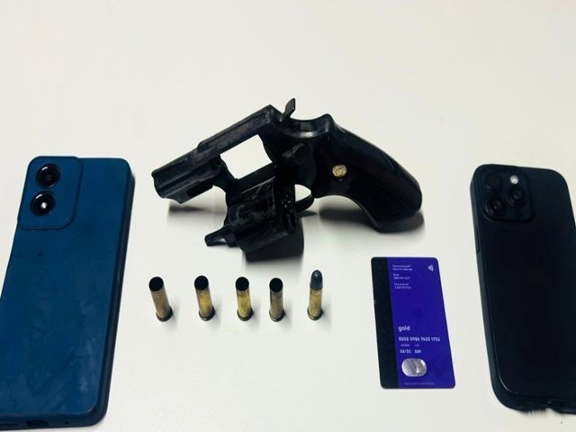 No imóvel, os policiais apreenderam um revólver calibre .38, quatro munições deflagradas e uma intacta, dois aparelhos celulares, um veículo Hyundai HB20 e uma motocicleta Honda XRE 190, ambos com indícios de adulteração.