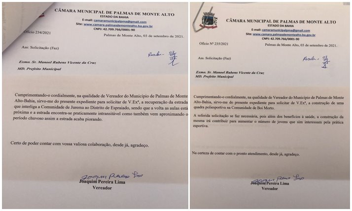 Em outro ofício, Joaquim requereu ao chefe do executivo para que possa viabilizar a construção de uma quadra poliesportiva na comunidade de Boi Morto. O edil ressaltou que, além dos benefícios à saúde, o empreendimento contribuirá para ampliar o número de jovens que se interessam pela prática esportiva.