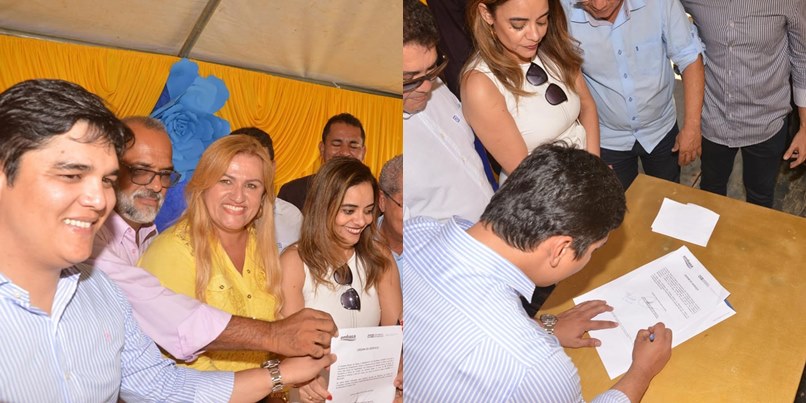 Nesta segunda-feira (8), o deputado estadual, Vitor Bonfim, participou da assinatura da ordem de serviço da extensão da rede para atender às comunidades de Barra do Furado e Posedônio, no município de Cândido Sales. Com apoio do parlamentar, mais de 1.500 pessoas serão atendidas com água de qualidade na região.